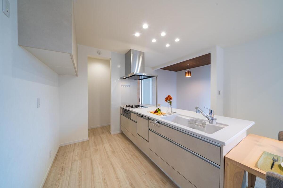 キッチンのカウンターはフラット仕様なので、見た目もすっきり。周...