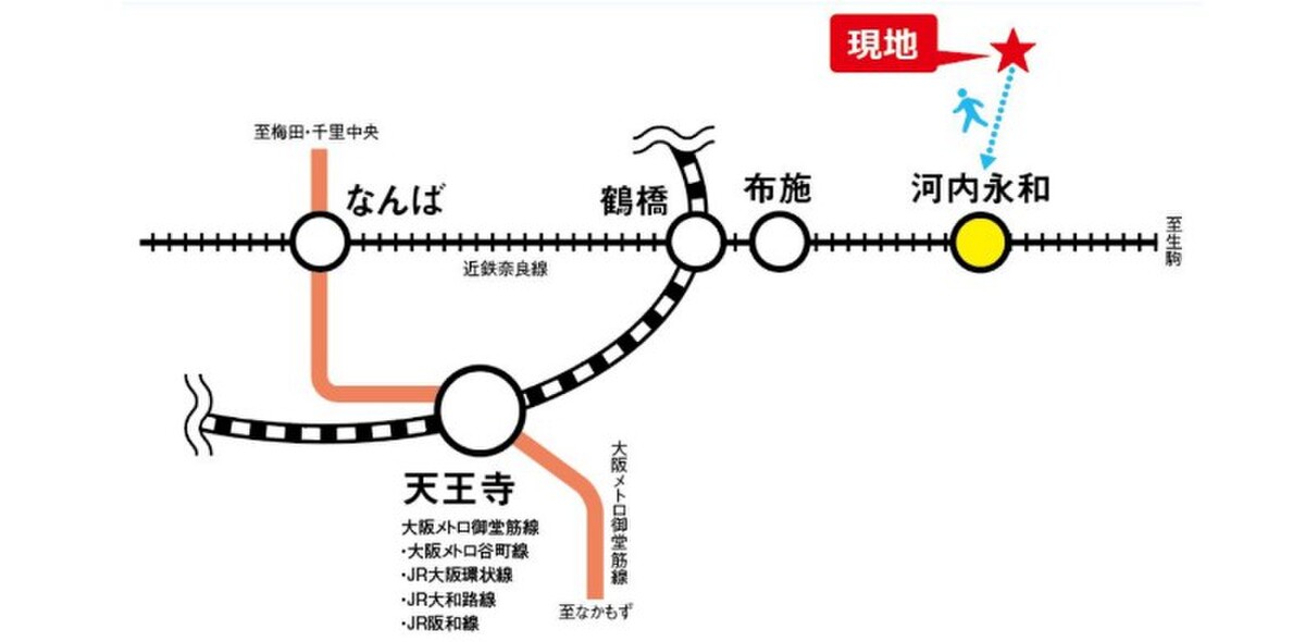 - 近鉄奈良線「河内永和」駅 徒歩12分おおさか東線「JR河内永和」駅 徒歩12分Osaka Metro中央線「高井田」駅 徒歩14分