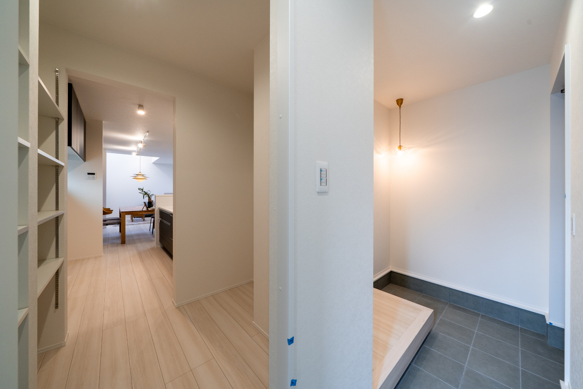 玄関からパントリーを経由して、キッチンまで行くことができるスムーズな帰宅動線です。