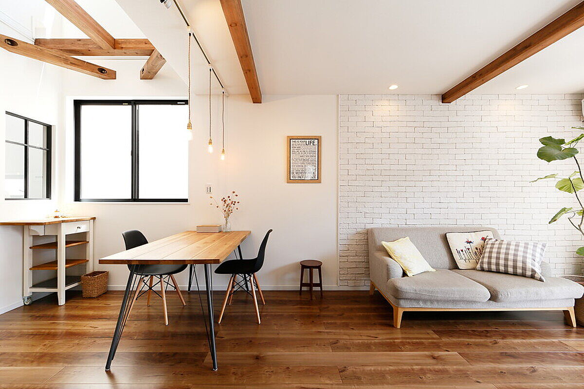 木目とブラックアイアンの調和が美しいキッチン、抜群の開放感のリビングなど必見です!