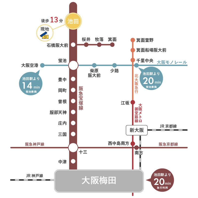 阪急宝塚本線「池田」駅 徒歩13分 阪急宝塚本線「石橋阪大前」駅 徒歩19分 |