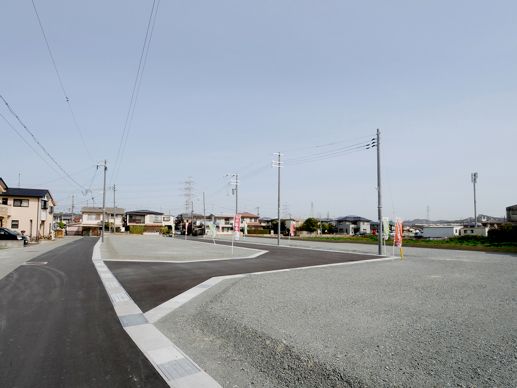 山電伊保駅まで1100m。自転車利用で約5分。閑静な住宅地内の全10区画開発分譲地です。お客様のご希望に合わせた間取りやデザインでつくるフリープラン建物とセット販売の建築条件付宅地です。