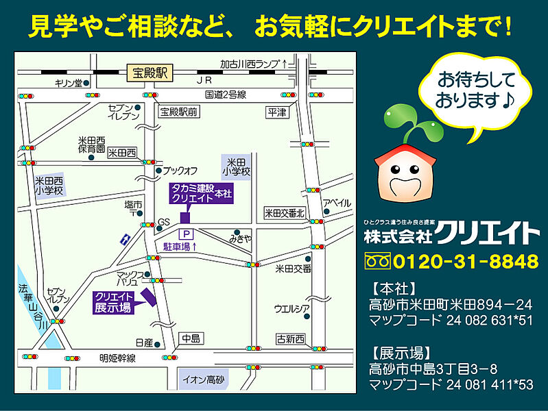 株式会社クリエイト:兵庫県高砂市米田町米田894-24 0120-31-8848
