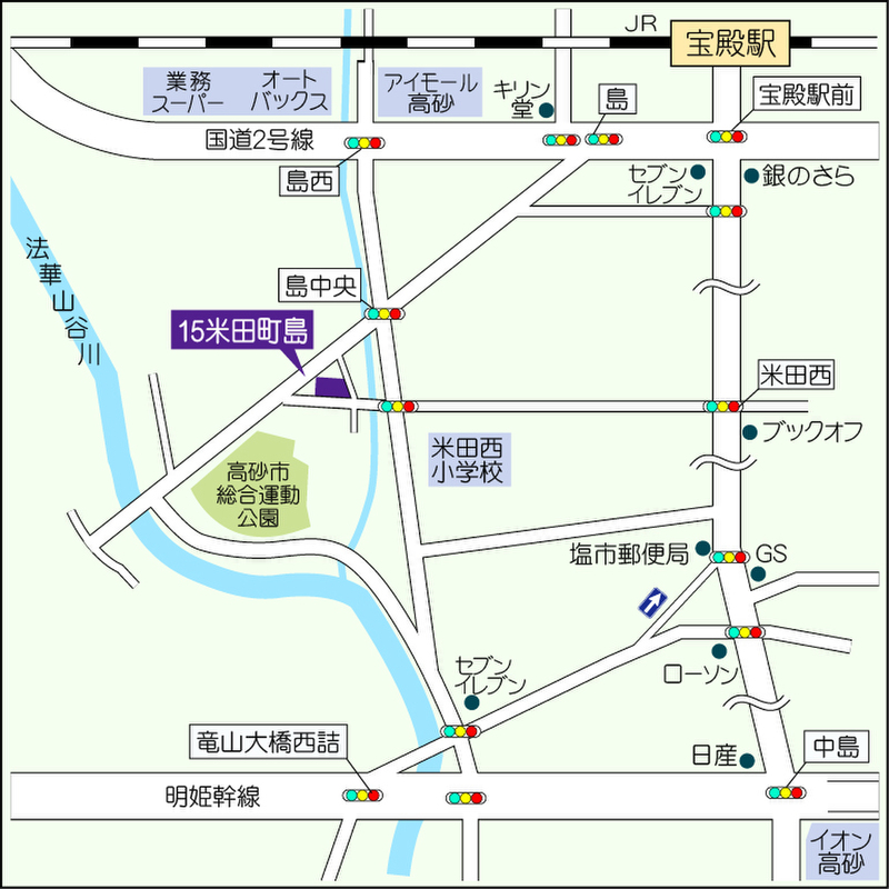JR山陽本線「宝殿」駅 徒歩11分~12分 山陽電鉄本線「伊保」駅 2700m~2720m(自転車利用約14分) JR山陽本線「加古川」駅 4400m~4420m |