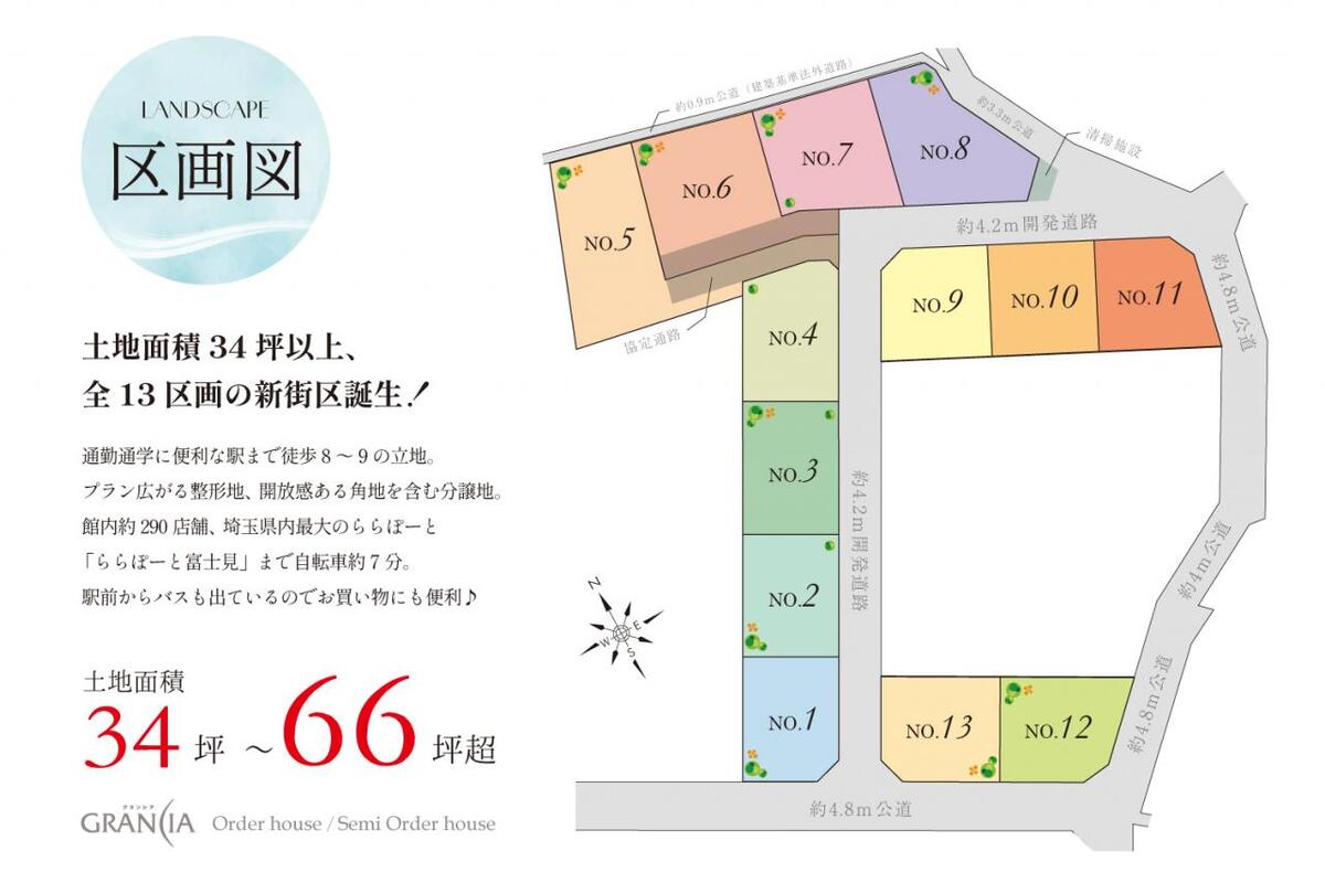 ■各区画115m2~221m2(約34坪~66坪)のゆとりある広さ