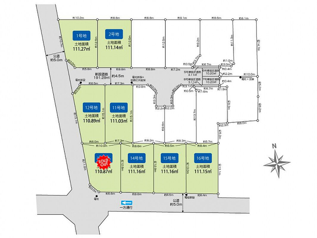| 駐車場 | 0台 | 道路の幅員 | 西5.0m公道、南5.0m公道、新設道路4.5m私道 |