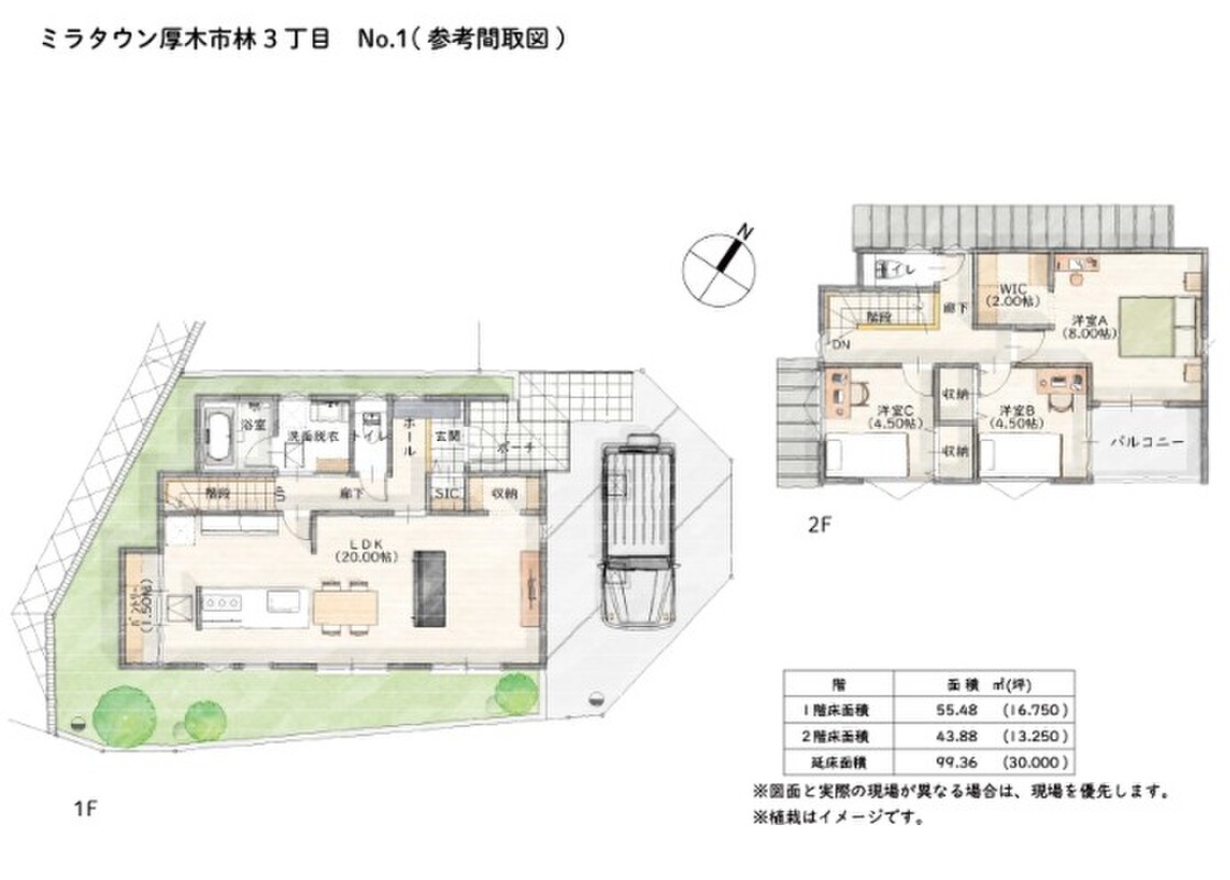 - ※完成予想図やCG合成画像は、門塀・植栽・庭・外観等、実際とは多少異なる場合があります。