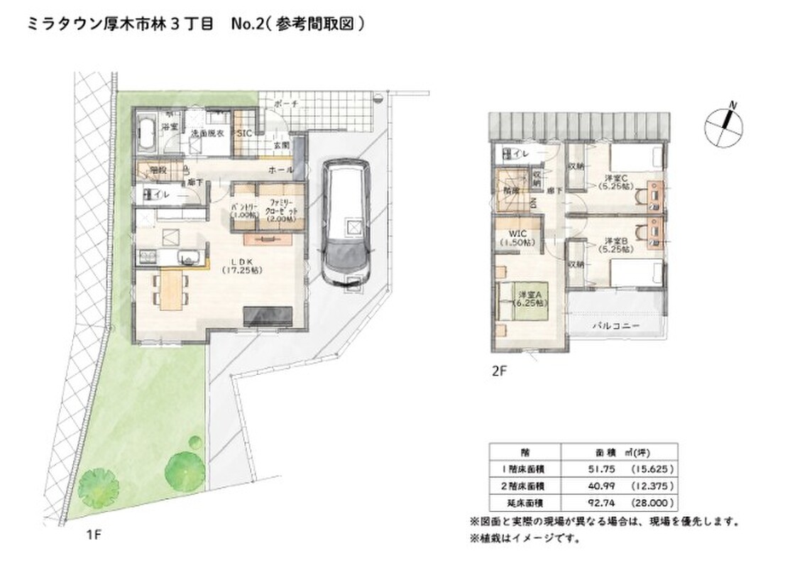 | 建物面積 | - | 土地面積 | 実測122.51m2(37.05坪)~実測129.23m2(39.09坪) |
