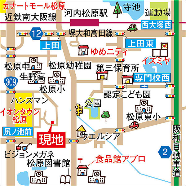 ■近鉄南大阪線【河内松原】駅徒歩約15分 ■松原小学校徒歩約9分(約700m)■松原中学校13分(1300m)