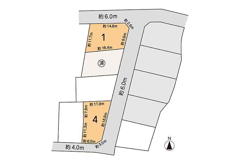 | 駐車場 | 3台 | 道路の幅員 | 中央・北側:約6.0m、南側:約4.0m、東側:約20.0m |
