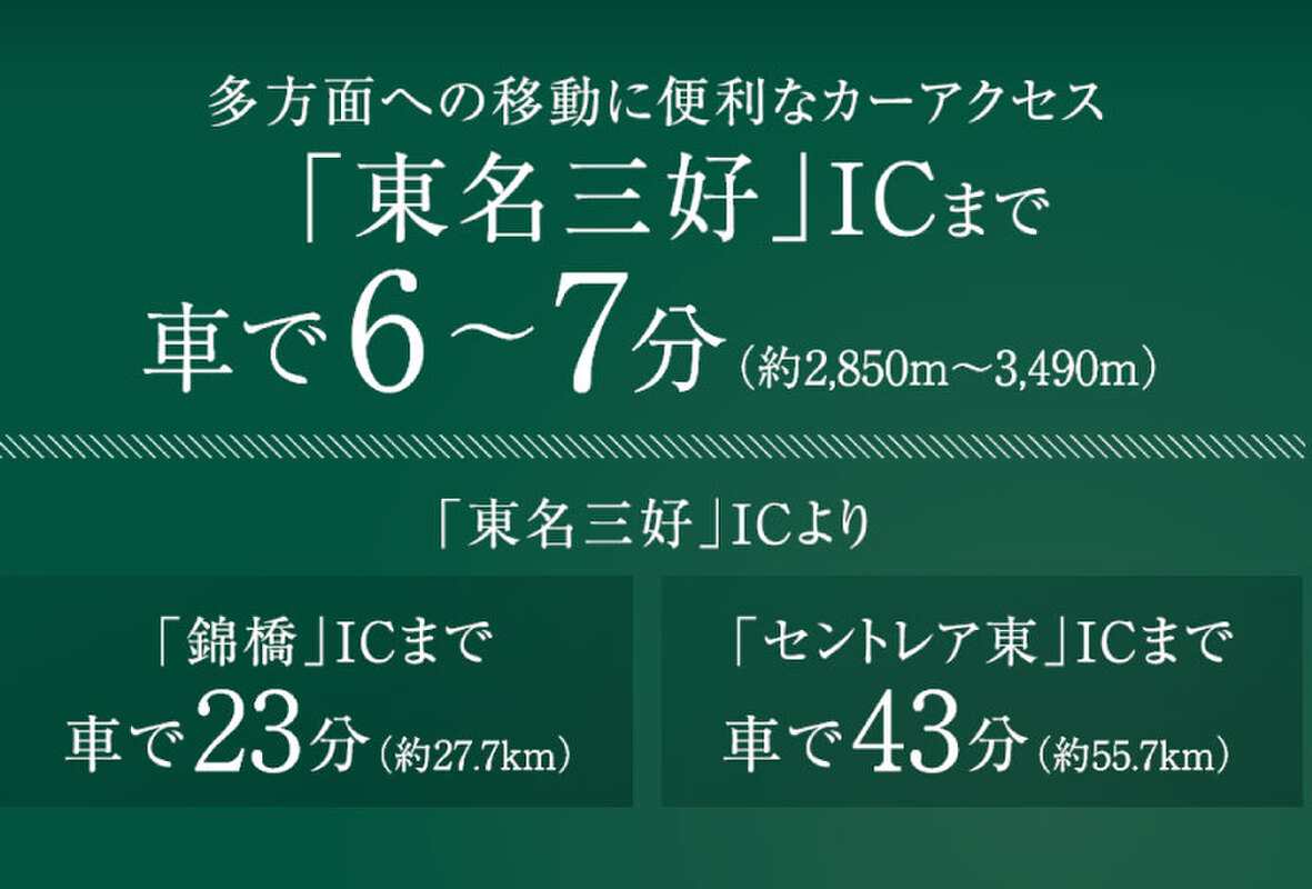 (3)東名三好ICまで車で6~7分。多方面への移動に便利なカーアクセス。