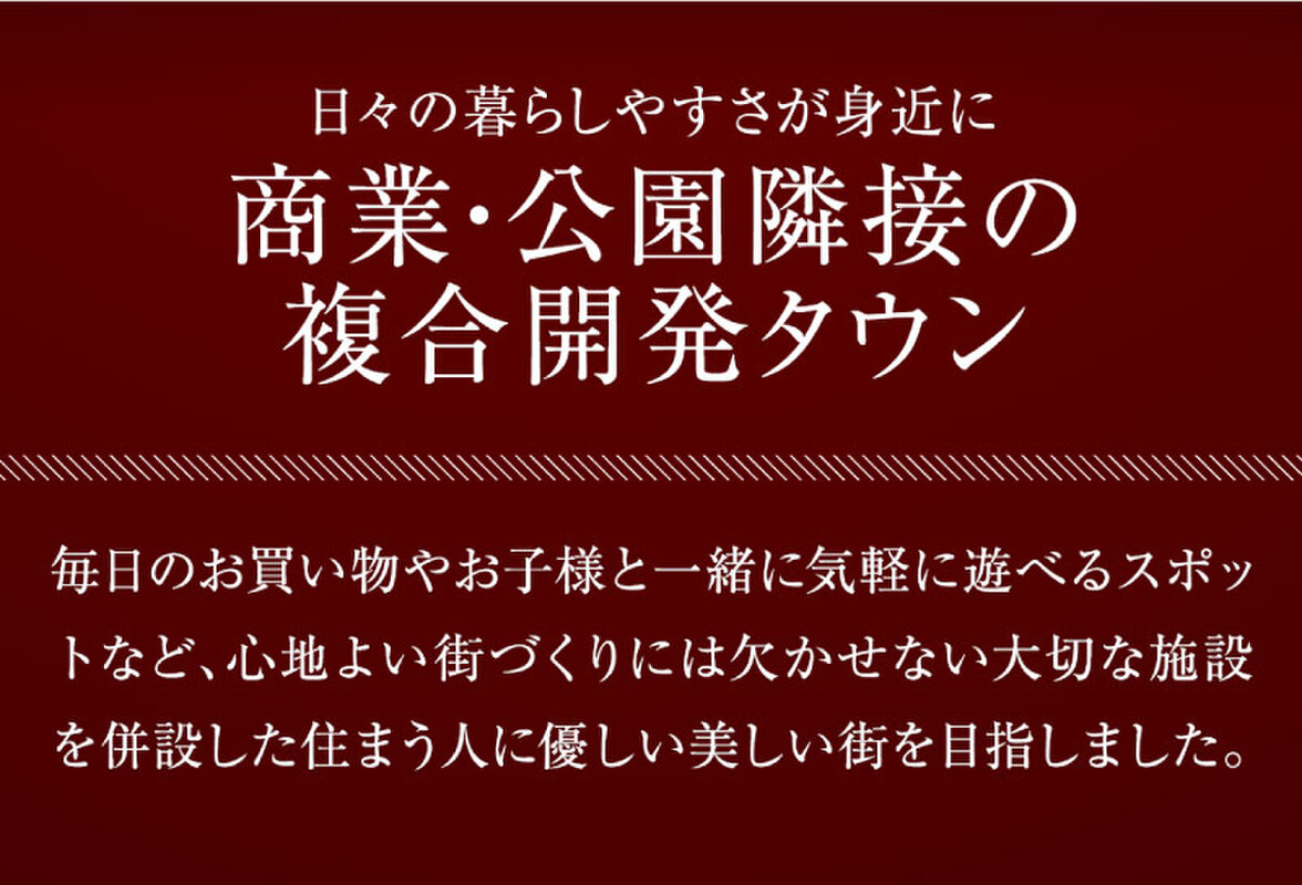 (1)商業・公園隣接の複合開発タウン。日々の暮らしやすさが身近に。