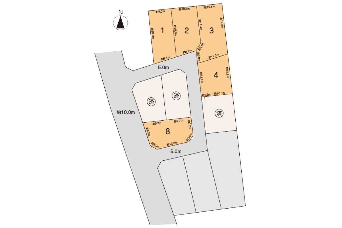 | 駐車場 | 3台 | 道路の幅員 | 西側公道約10m、開発道路5.0m |