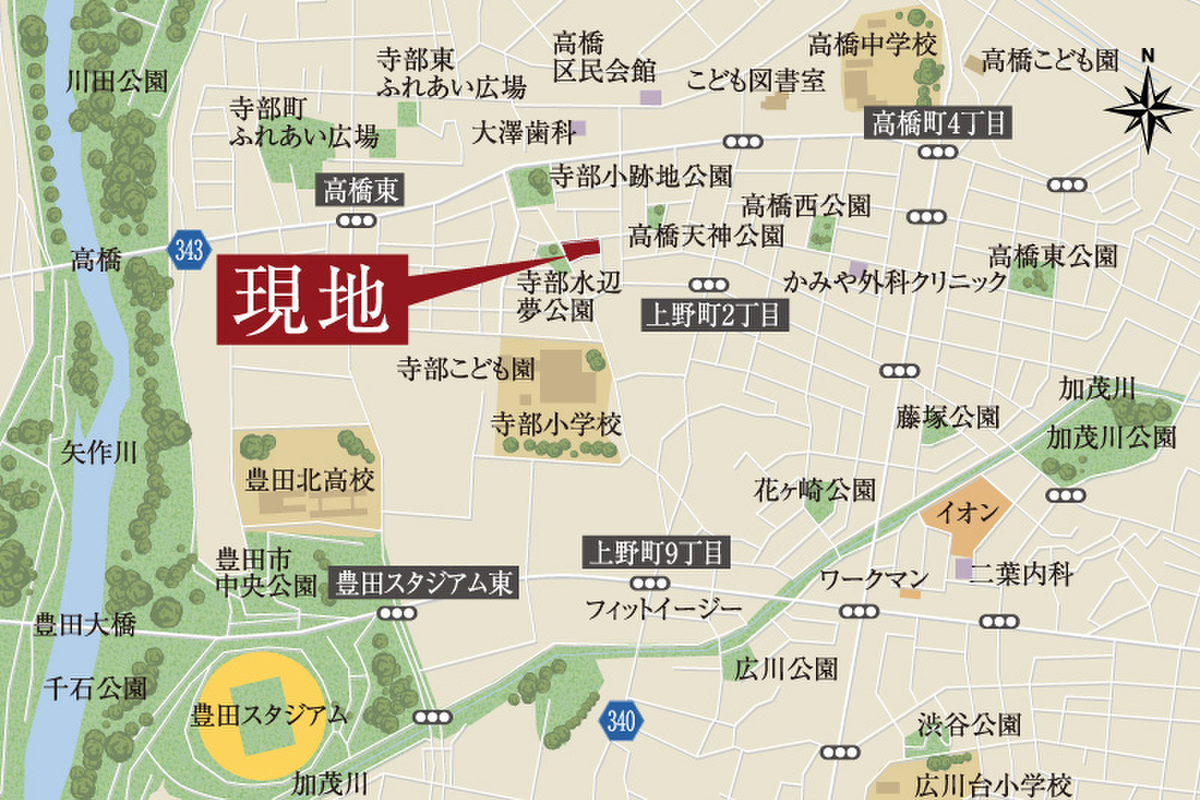 - 名鉄バス「寺部中町」 徒歩5分~6分名鉄三河線「豊田市」駅 車で4分