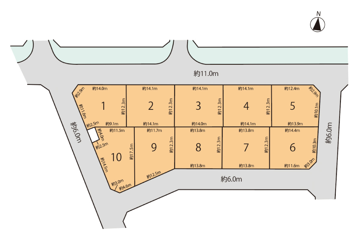 | 駐車場 | 3台 | 道路の幅員 | 北側市道:約11m、東・南・西側市道:約6m |