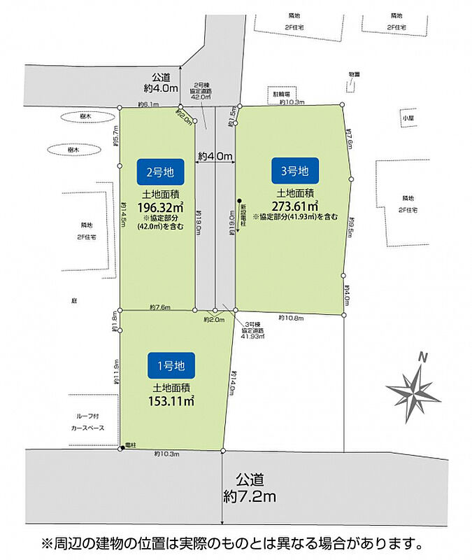 | 建物面積 | - | 土地面積 | 153.11m2(約46.31坪)~273.61m2(約82.76坪) |
