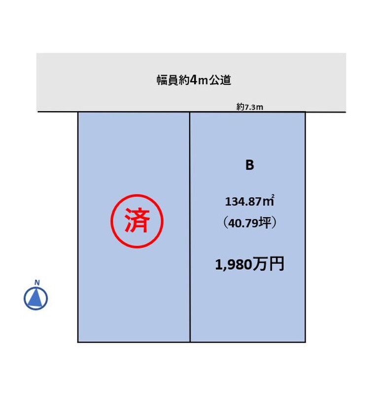 | 駐車場 | - | 道路の幅員 | 北側4m公道に約7.3m接道 |