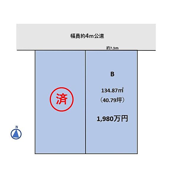 | 駐車場 | - | 道路の幅員 | 北側4m公道に約7.3m接道 |