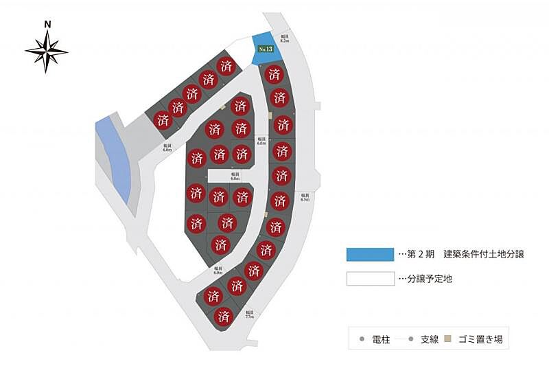 敷地面積:124.09平方メートル(37.53坪)西側接道物件 南側に駐車場を計画した区画