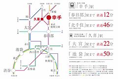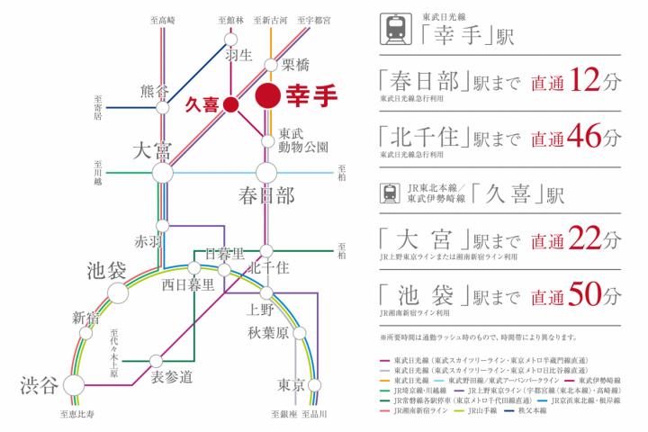 「JR宇都宮線・東武伊勢崎線久喜駅」「東武日光線幸手駅」が利用できる立地なので、都心駅のアクセスが楽々。