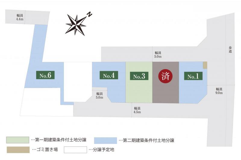 120平米以上の全7区画の分譲地。 接道する開発道路は、分譲地の生活道路のため車の往来も少なく安心。 まちなみガイドラインで景観を維持。 またコミュニティを育む公園が住宅街の近くに位置しています。