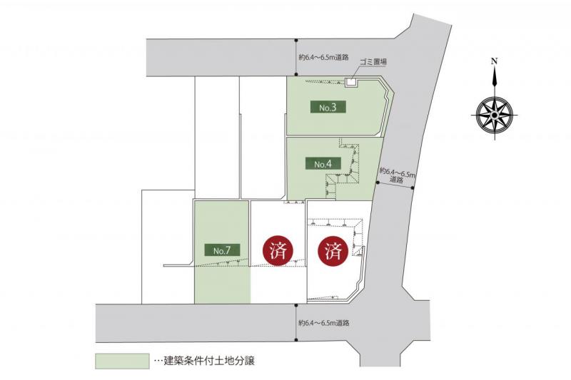 | 建築条件 | 建築条件付 建築条件付き土地とは一定期間内に、その土地に建築する建物の請負契約が締結されることを条件に販売される土地のことです。 土地売買契約締結後、建築請負会社と購入した土地に建築する建物について協議することになります。広告に参考プランが掲載されている場合でも、プランは一例であり、実際の建築プランは建築請負会社と土地購入者で協議・検討することが可能です。 期間内に建築プランが決まらず建築請負契約が成立しなければ土地売買契約は白紙となり、支払済みの金銭はすべて返還されます。 建築請負会社が指定されている場合と指定されていない場合があります。 また、建築条件付き土地の価格には、建物価格は含まれません。 |