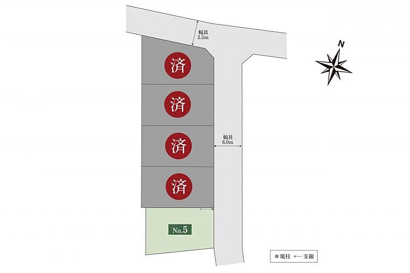 魅力3 約41坪の全5区画(当社分)、日当たり良好の分譲地。
