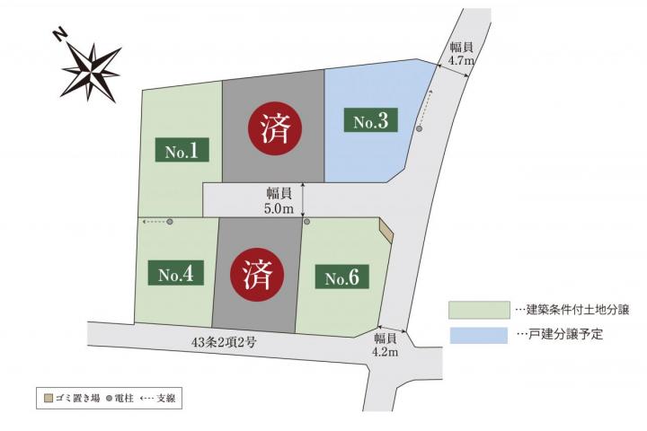 | 主たる設備の概要 | LPG、公営水道、公共下水、公共下水、電気、CATV | 開発許可番号 | 完成済み |