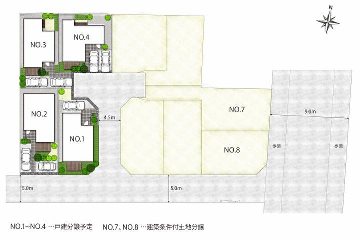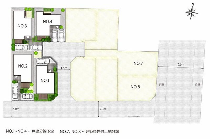 | 建築条件 | 建築条件付 建築条件付き土地とは一定期間内に、その土地に建築する建物の請負契約が締結されることを条件に販売される土地のことです。 土地売買契約締結後、建築請負会社と購入した土地に建築する建物について協議することになります。広告に参考プランが掲載されている場合でも、プランは一例であり、実際の建築プランは建築請負会社と土地購入者で協議・検討することが可能です。 期間内に建築プランが決まらず建築請負契約が成立しなければ土地売買契約は白紙となり、支払済みの金銭はすべて返還されます。 建築請負会社が指定されている場合と指定されていない場合があります。 また、建築条件付き土地の価格には、建物価格は含まれません。 |