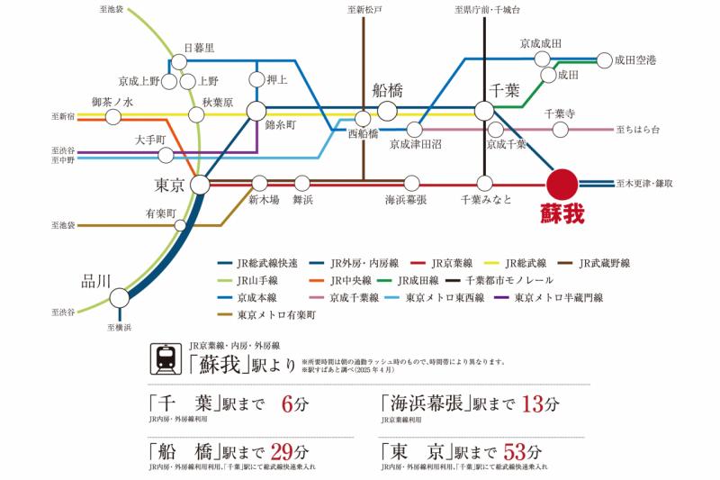 徒歩13分、京葉始発駅でもある「蘇我」駅。東京駅まで快適