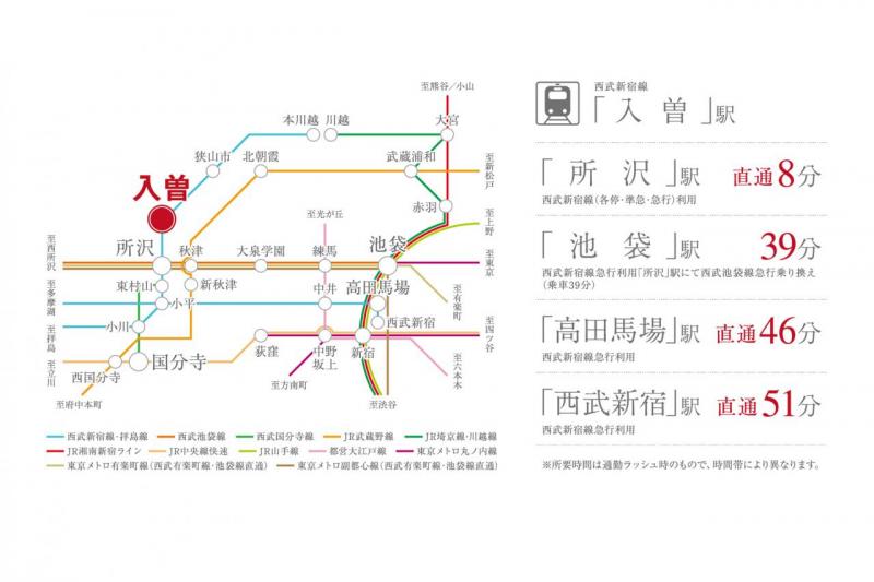 西武池袋線と西武新宿線が交差する「所沢」駅まで直通8分。