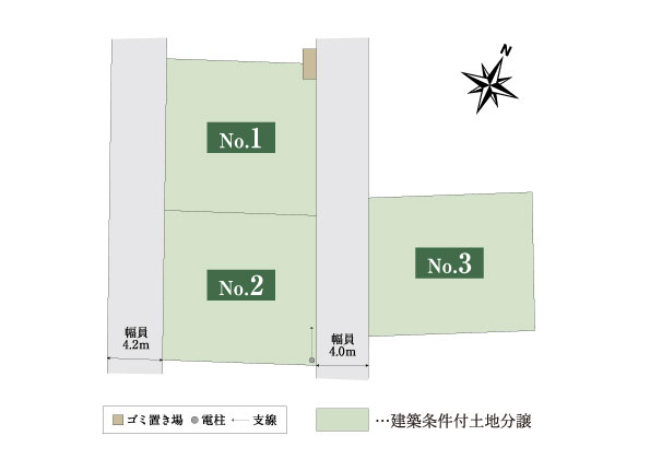 | 建築条件 | 建築条件付 建築条件付き土地とは一定期間内に、その土地に建築する建物の請負契約が締結されることを条件に販売される土地のことです。 土地売買契約締結後、建築請負会社と購入した土地に建築する建物について協議することになります。広告に参考プランが掲載されている場合でも、プランは一例であり、実際の建築プランは建築請負会社と土地購入者で協議・検討することが可能です。 期間内に建築プランが決まらず建築請負契約が成立しなければ土地売買契約は白紙となり、支払済みの金銭はすべて返還されます。 建築請負会社が指定されている場合と指定されていない場合があります。 また、建築条件付き土地の価格には、建物価格は含まれません。 |