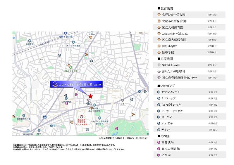 小田急小田原線「祖師ヶ谷大蔵」駅 徒歩14分 小田急小田原線「成城学園前」駅 徒歩25分 |