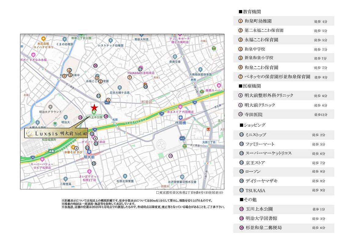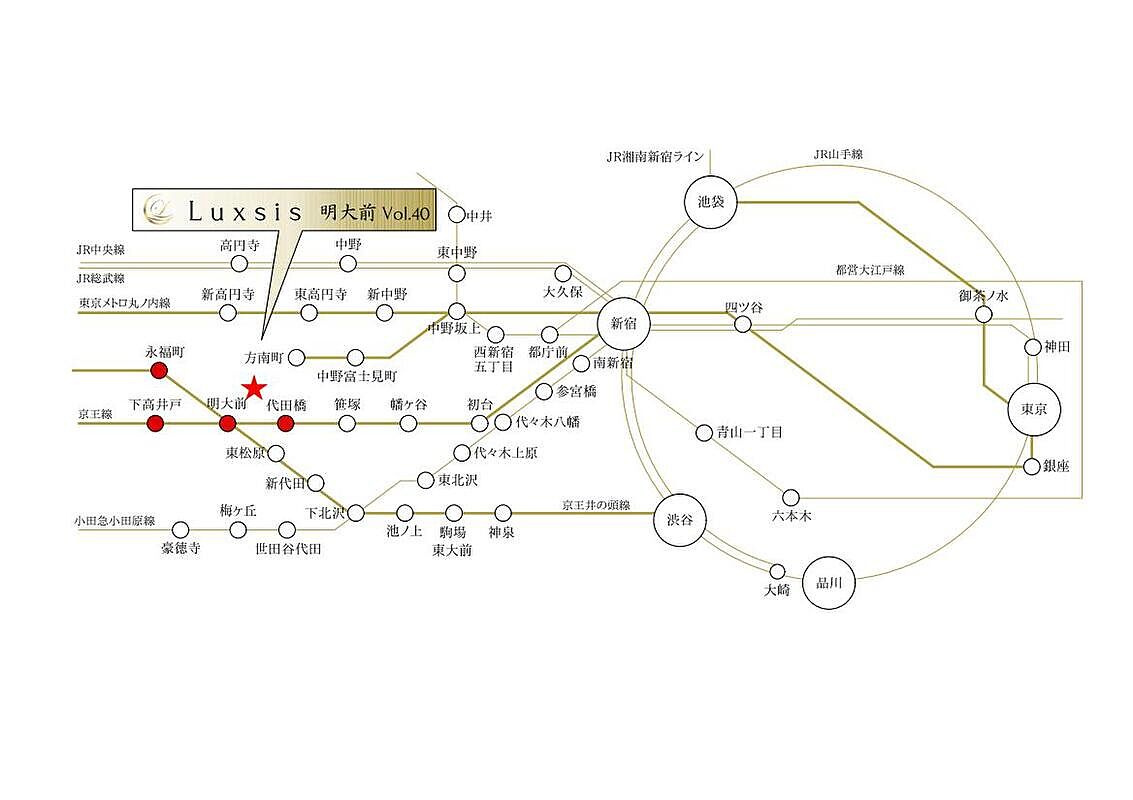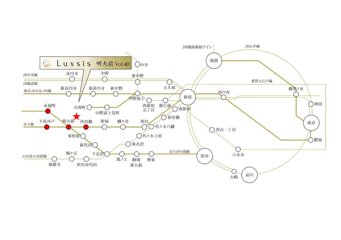 京王線「明大前」駅 徒歩7分 京王線「代田橋」駅 徒歩12分 京王井の頭線「永福町」駅 徒歩12分 |