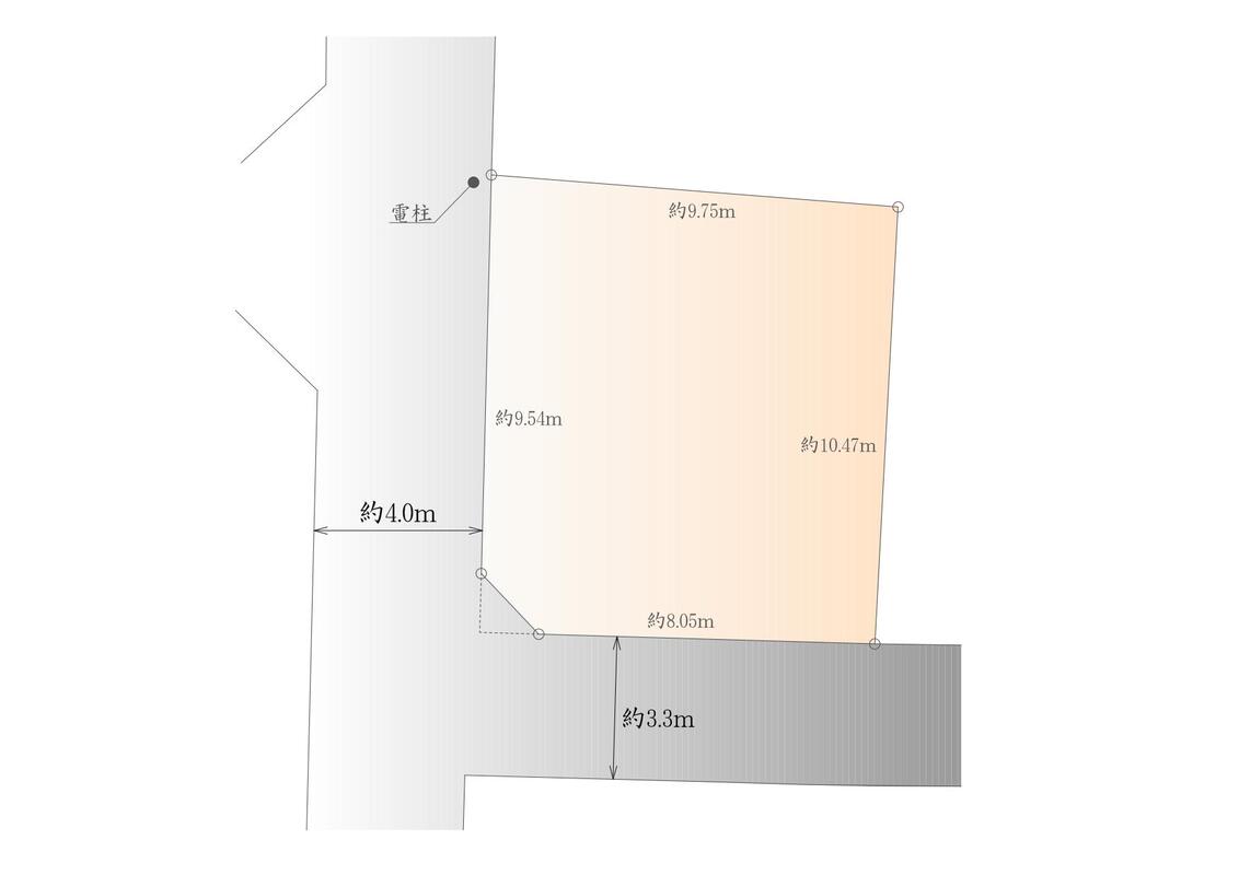 | 建物面積 | - | 土地面積 | 約107m2(東京都建築安全条例による隅切り部分0.91m2含む) |