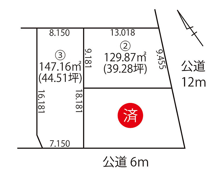 | 駐車場 | - | 道路の幅員 | 南東12m公道、南西6m公道 |