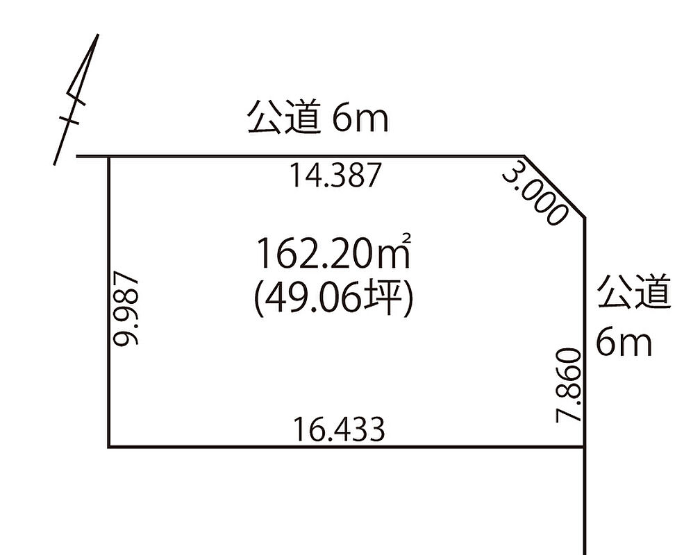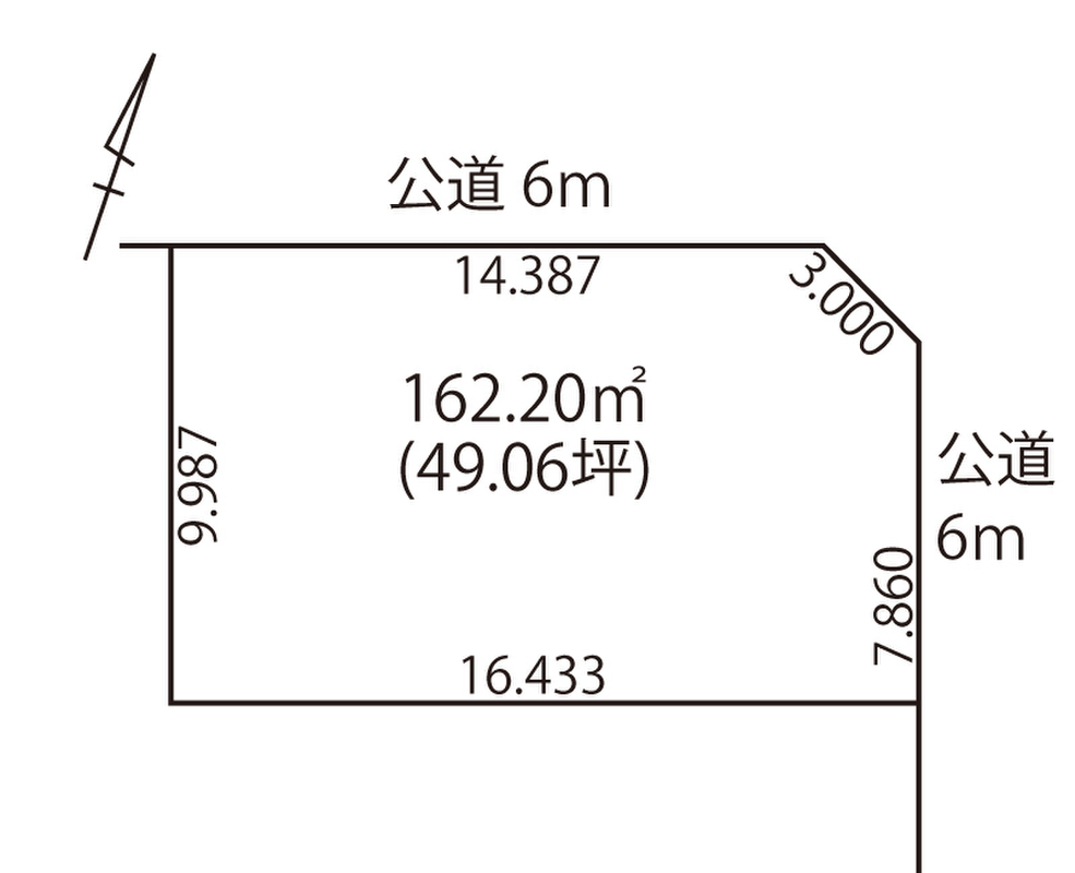 | 駐車場 | - | 道路の幅員 | 北東側6m公道、北西側6m公道 |