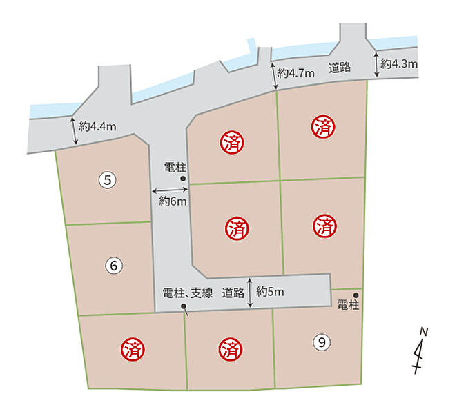 | 駐車場 | - | 道路の幅員 | 道路幅:4.4m~6m/道路幅の備考:約4.4m、約5m、約6m |