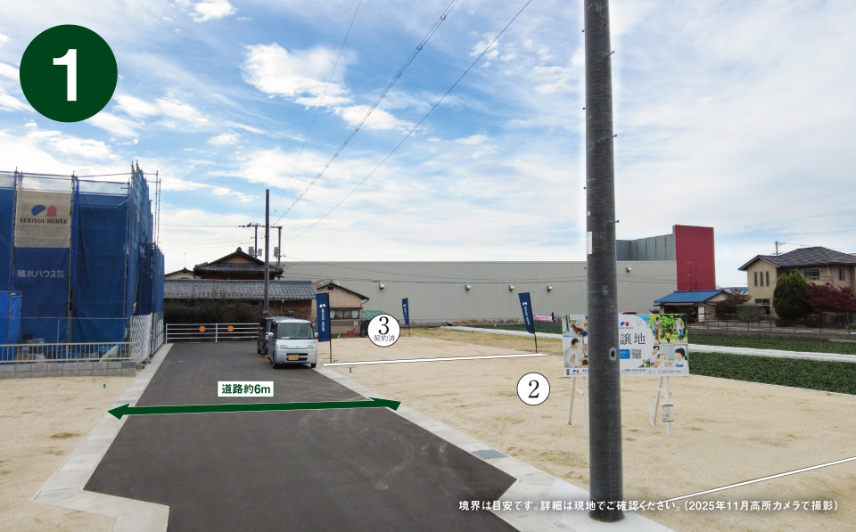 | 備考 | ●販売価格には上下水道負担金550,000円が含まれています。●電柱の移動はできません。●本分譲地の土地売買契約は、契約締結後3ヶ月以内に販売代理人である積水ハウス株式会社との間で建築工事請負契約が成立することを条件として効力を生じることとなります。期限までに建築工事請負契約が成立しなかったときは、土地売買契約の無効が確定し、受領済の手付金等は、全額無利息にてすみやかに返還いたします。 | ||