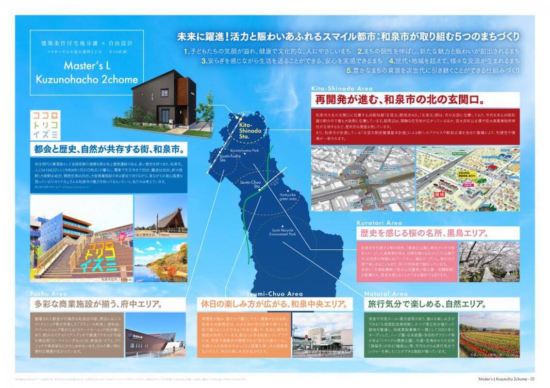 ●法2条・道路、隣地各斜線制限及び日影規制有、景観法・都市再生特別措置法・水防法 ●6号地の南西側角を電柱の支線が一部、上空を通過しています。 ●6・7号地前の道路側溝には、グレーチングを設置します。 ●開発道路と線路沿いにある緑地は、和泉市に帰属します。 ●北東側道路は、和泉市の所有地です。車の通行は不可です。(人、自転車等は通行できます) ●開発地内の電柱にはLED防犯灯を設置します。(設置時期は葛の葉町会と相談) ●ゴミ置き場:戸別収集 ●中学校:冨秋中学校と信太中学校の2校から選択制です。 ※この土地は土地売買契約後3ヶ月以内に当社と建築請負契約を結んで頂くことを停止条件として販売します。この期間内に建築請負契約が成立しない場合は、売買契約は無かったことになり、申し込み金その他お預かりした金員は全額無条件にて返還します。 ※長期優良住宅を標準仕様としておりますが、建築条件や販売時期等により一部対象外となる場合がございます。あらかじめご了承ください。 |