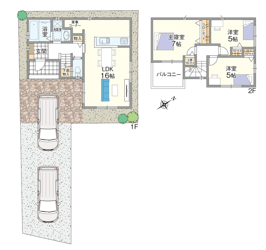 - ※完成予想図やCG合成画像は、門塀・植栽・庭・外観等、実際とは多少異なる場合があります。