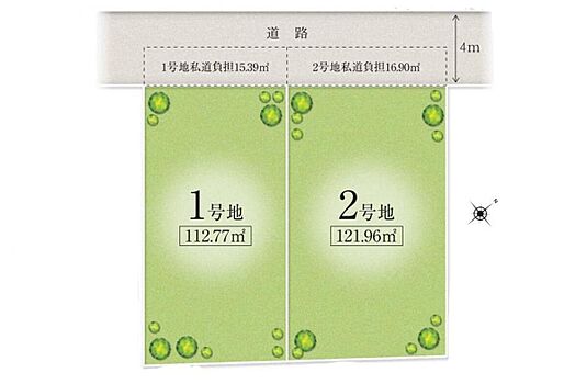 \敷地全体を有効活用できる、整った総2区画/