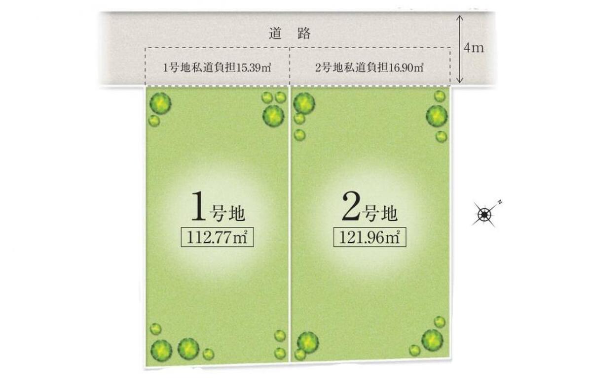 ※その他特記事項:本物件は令和4年3月31日出火し全焼した跡地、特にけが人等はありませんでした。 ※私道負担:建築確認申請前に43条の許可の取得が必要です。 前面道路の中心から半分(約2m)が私道負担になります。 他の半分が他人地で現状建物(4棟)の前をそれぞれ所有してます。 内3件は通行と掘削の同意書を取得してますが、向かって一番右側については未取得です。 ※この土地は土地売買契約後3ヶ月以内に当社と建築請負契約を結んで頂くことを停止条件として販売します。この期間内に建築請負契約が成立しない場合は、売買契約は無かったことになり、申し込み金その他お預かりした金員は全額無条件にて返還します。 ※長期優良住宅を標準仕様としておりますが、建築条件や販売時期等により一部対象外となる場合がございます。あらかじめご了承ください。 |