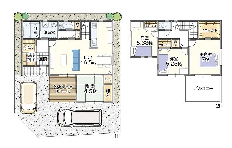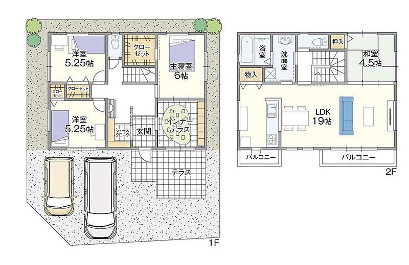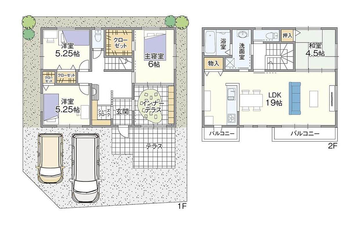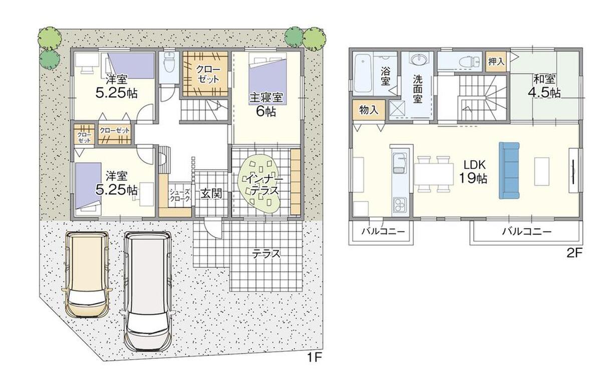 ●2階建×4LDK&カースペース2台分付きの参考プラン有り(車種による)。
