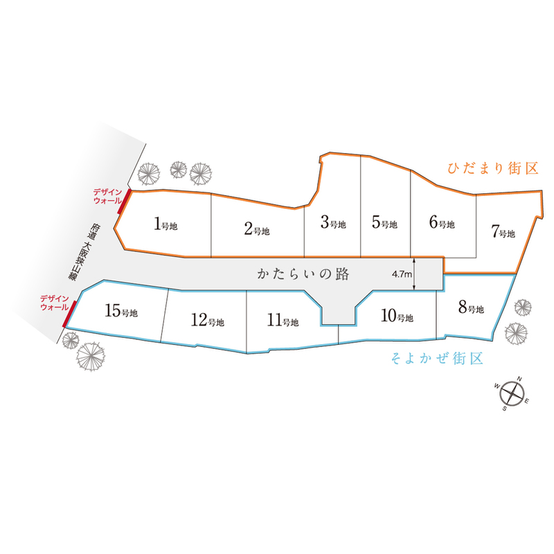 ●全区画、街区内道路に面しているので、住民以外の出入りが少ない分譲地です。