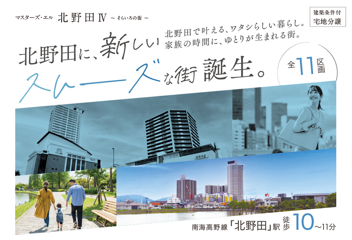 南海高野線「北野田」駅徒歩10分。全11区画の新街区!