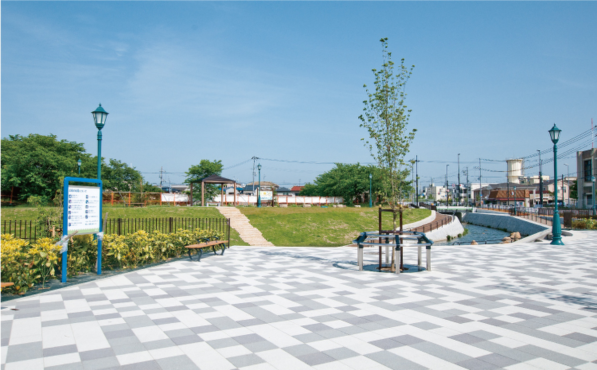 芦田川に沿って広がる、2018年完成の比較的新しい広場です。夏...