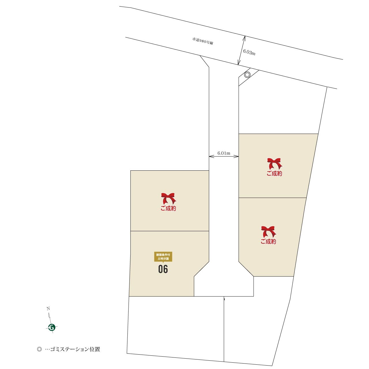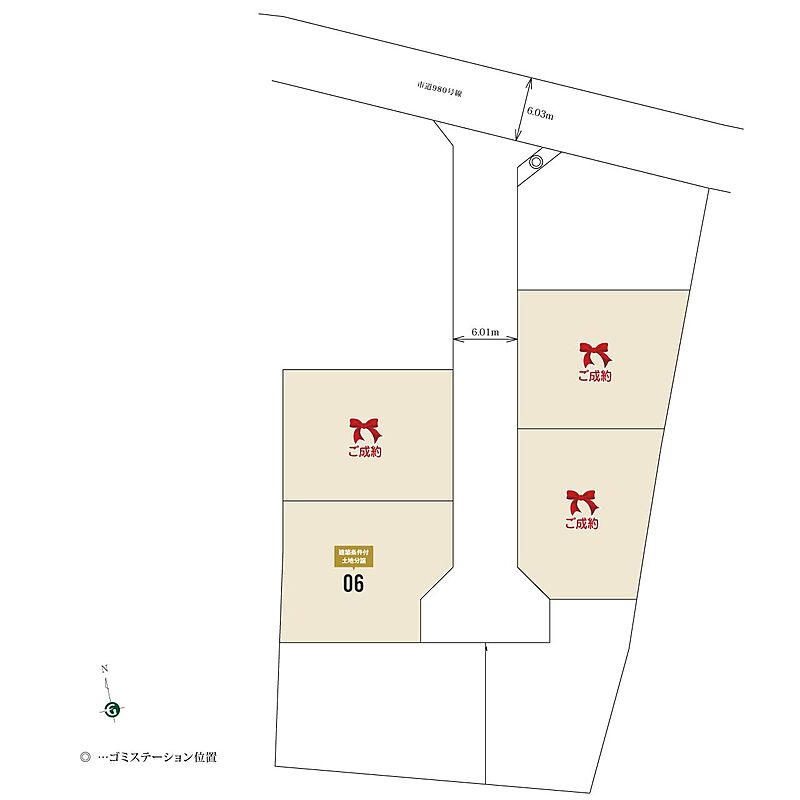 | 駐車場 | - | 道路の幅員 | 6号地:東6m |