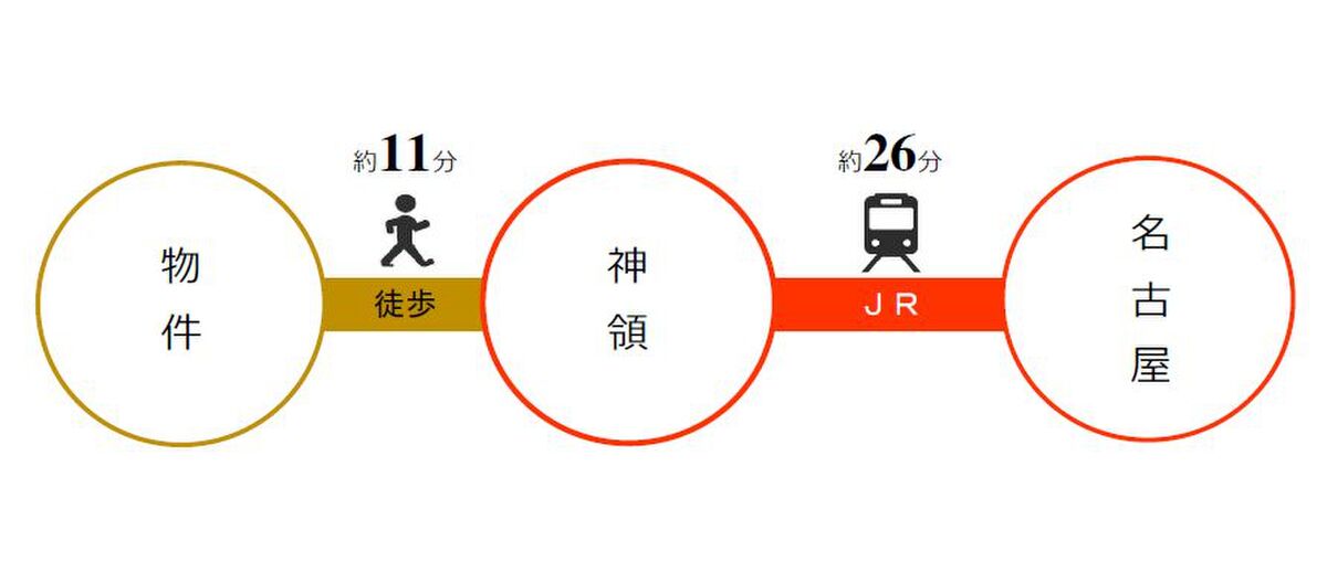 JR中央本線「神領」駅 徒歩11分 JR中央本線「春日井」駅 徒歩27分 JR中央本線「高蔵寺」駅 徒歩55分 |