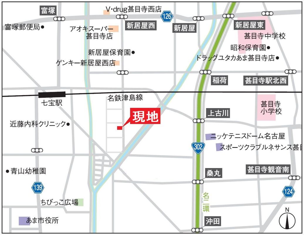 名鉄津島線「七宝」駅 徒歩8分 名鉄津島線「甚目寺」駅 徒歩21分 |